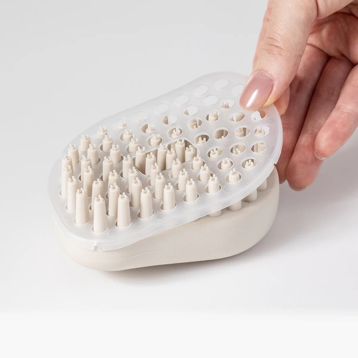【濃密泡とやわらかブラシで、お水を使わず肉球汚れをしっかり洗浄!】