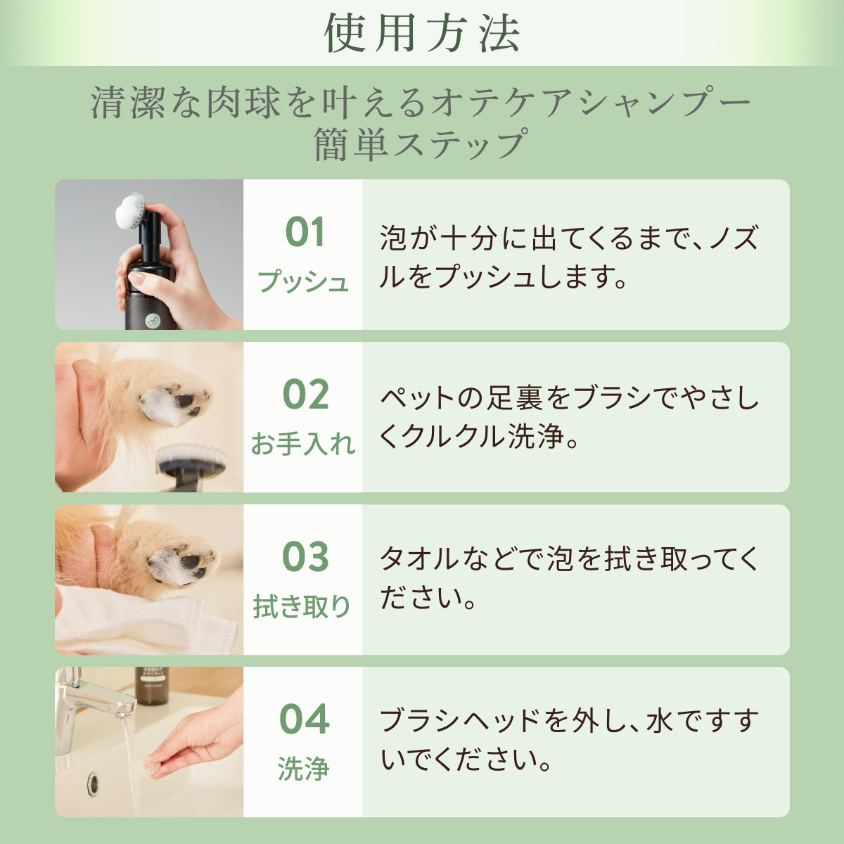 ③ブラシ部分から出た泡をペットの肉球に塗布し、やさしく汚れを落としてください。